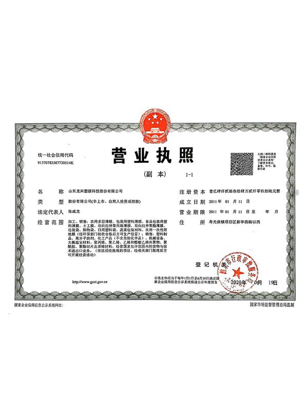 山東龍興塑膜科技股份有限公司前身為山東壽光龍興農膜有限公司組建于2011年,2018年10月重組,目前是壽光市國有控股公司、高新技術企業,是專業生產高檔農用薄膜、工業用薄膜的企業,是一家以產品制造為主,集科研開發(fā)、產品設計、技術服務于一體的綜合性企業。公司現有職工228人,各類工程技術人員97人,管理人員20余人,注冊資金14234.2096萬元,總資產102314萬元,目前是壽光市國有控股公司、高新技術企業。公司是中國塑料加工工業協會農膜專業委員會會員單位,中國復合材料工業協會會員單位,中國塑料加工工業協會雙向拉伸聚酯薄膜專業委員會會員單位...